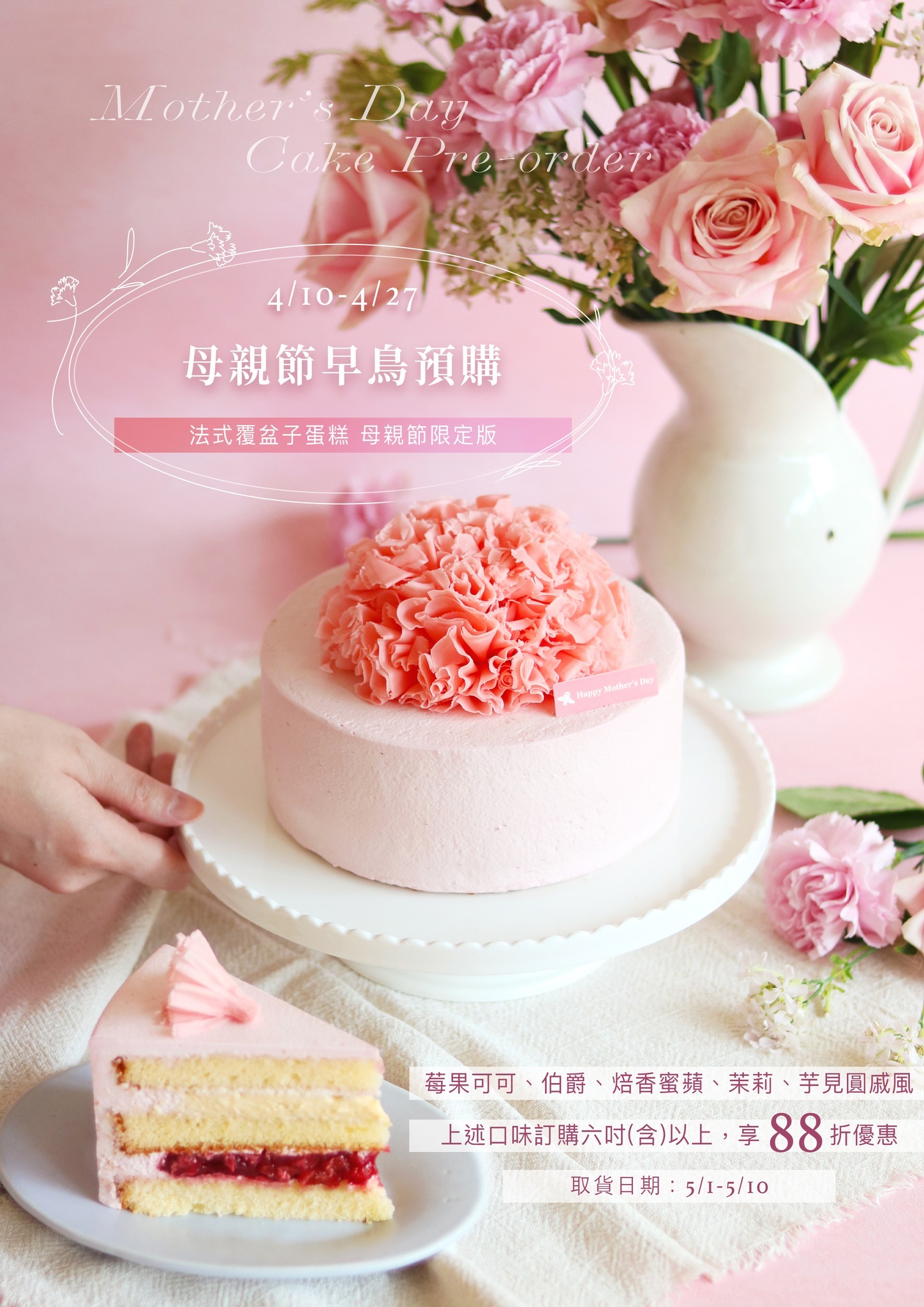 【2026年母親節早鳥優惠活動僅限6、8吋蛋糕享優惠價,4吋蛋糕不在此次優惠範圍內】