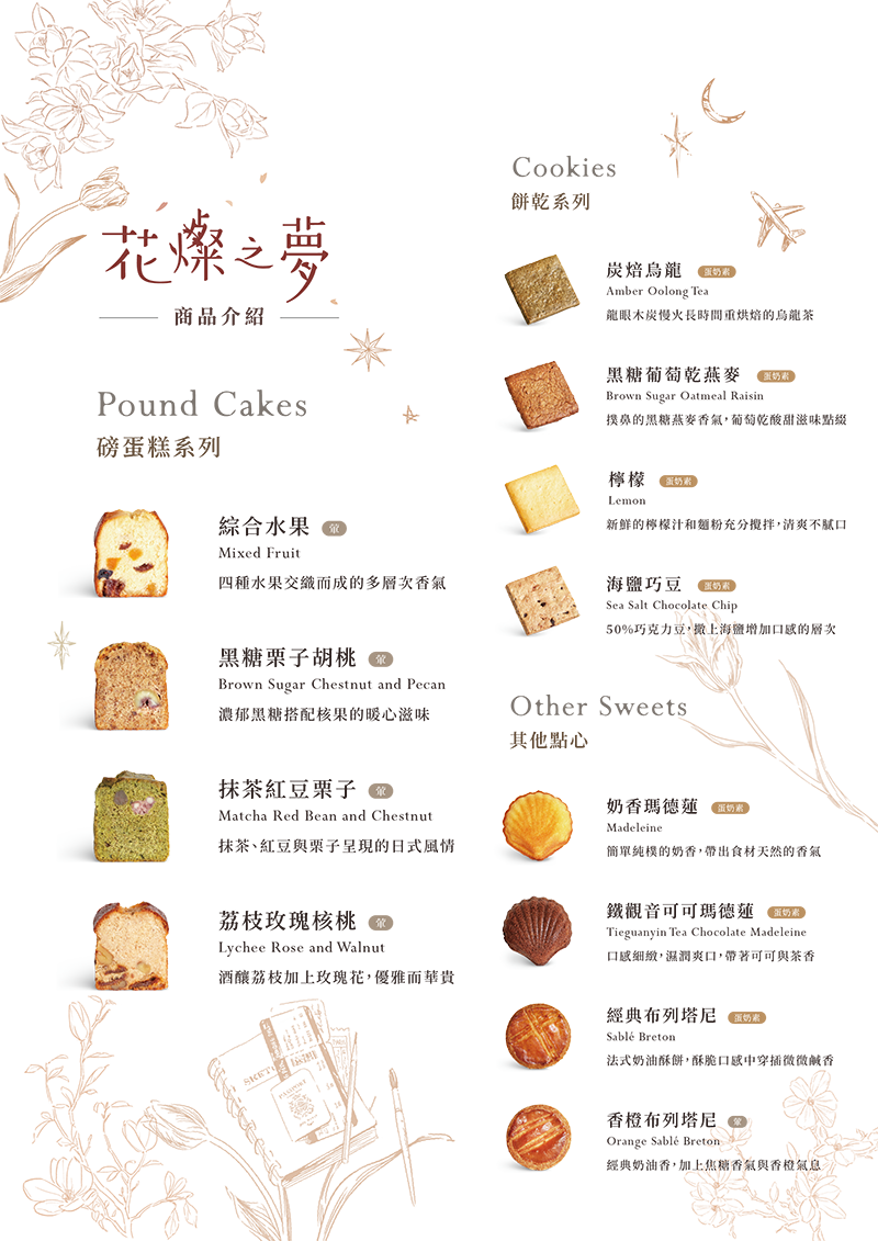 磅蛋糕:綜合水果、黑糖栗子胡桃、抹茶紅豆栗子、荔枝玫瑰