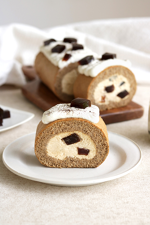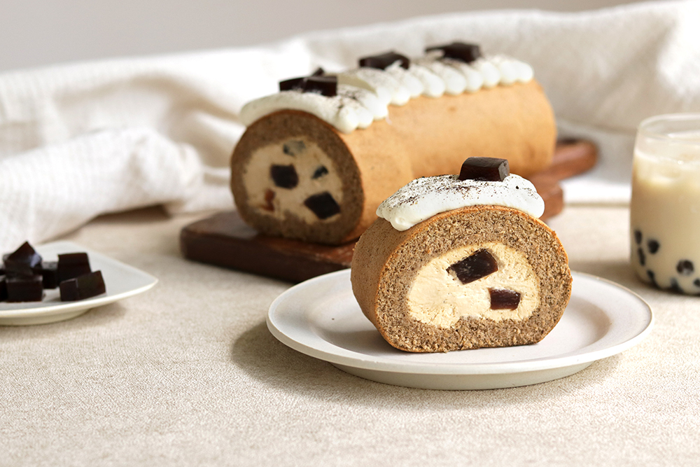 紅玉紅茶蛋糕捲入鮮奶茶奶餡以及黑糖凍增加口感